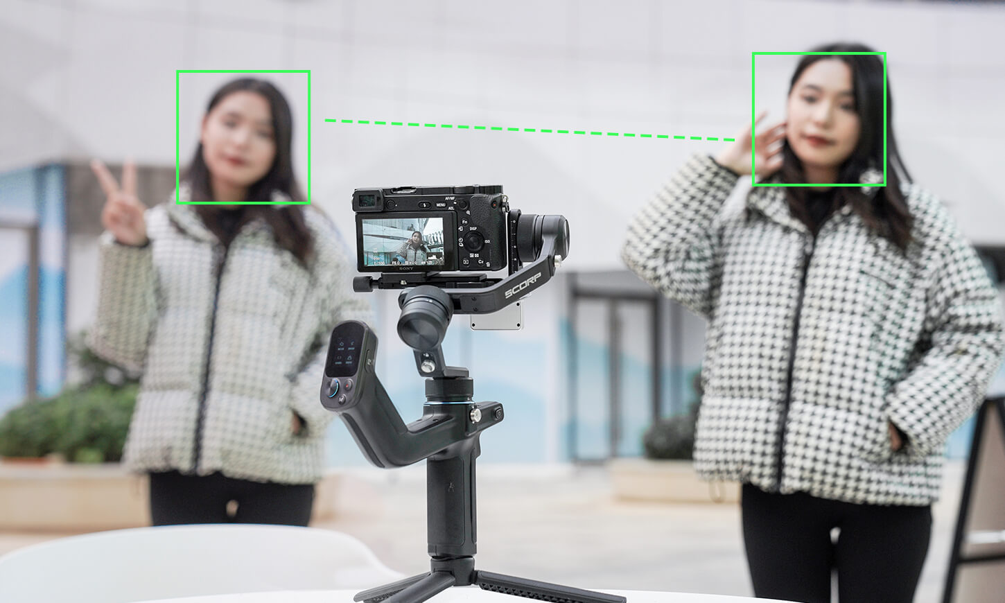 Remotely take photos and capture video just by using simple gestures.With easy intelligent tracking at hand,whenever you see the indicator light on,you're always at the center of the shot.